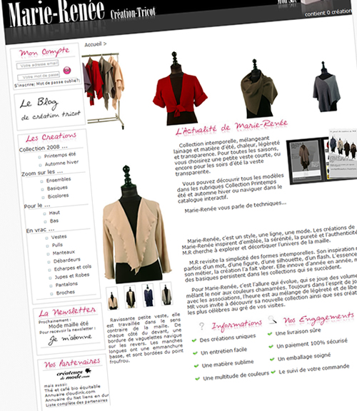 Beaucoup de modèles de création-tricot sont conçus en taille unique pour permettre un maximum d’aisance. Marie-Renée crée ses modèles pour plaire et séduire un grand nombre de femmes. Chaque modèle se décline en une large palette de couleurs tendance : noir, plusieurs gris, bleu, beige…